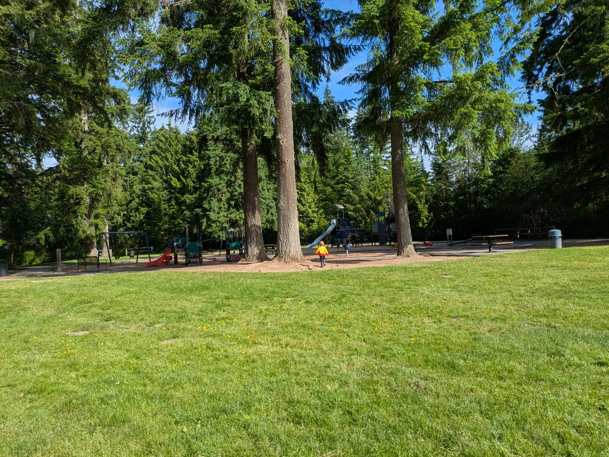 A quiet neighborhood park with a cozy lawn and minimal crowds, it’s a nice spot for a laid-back picnic in a shaded, natural setting.