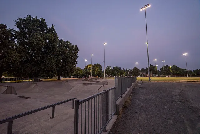 A fun, approachable spot for beginners and intermediate skaters, this park has small ramps, manual pads, and a welcoming neighborhood vibe. It’s a perfect warm-up park or learning space.